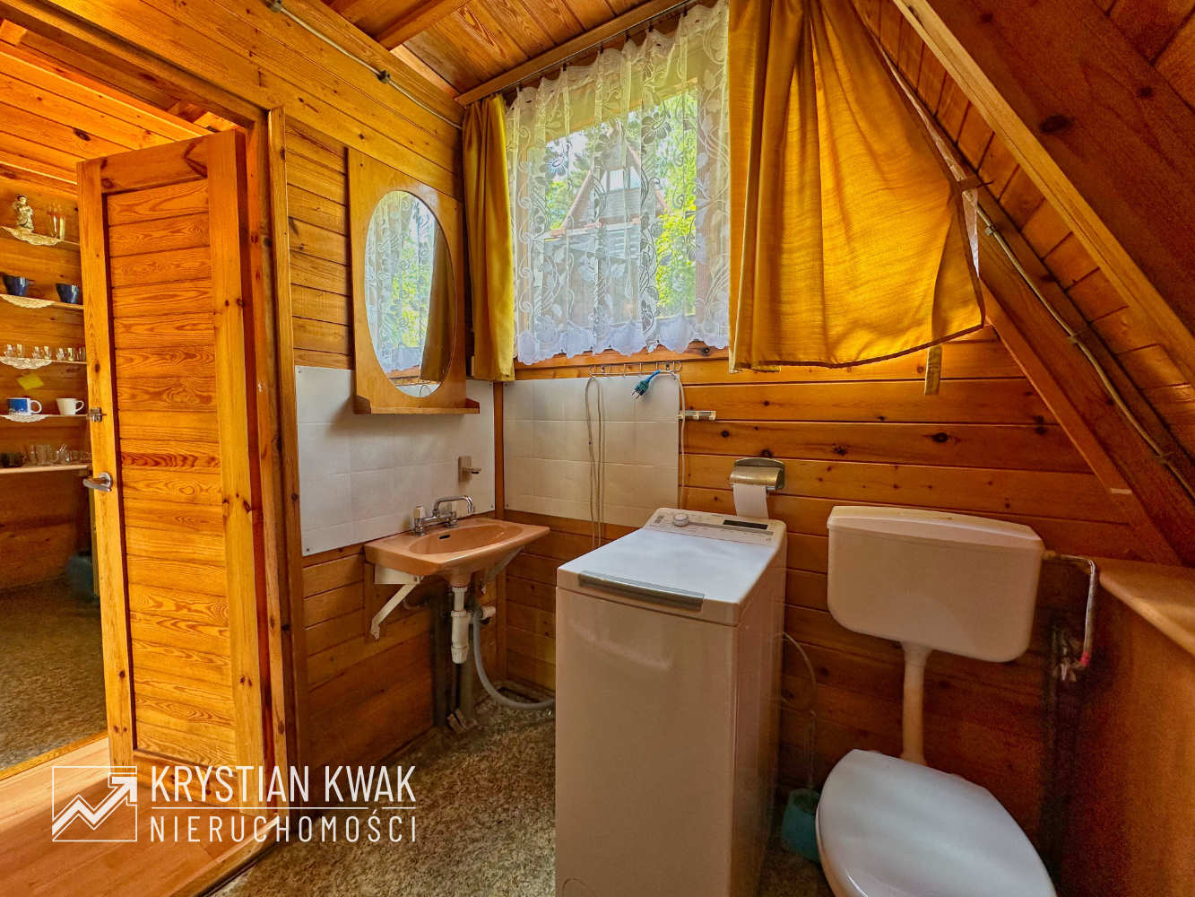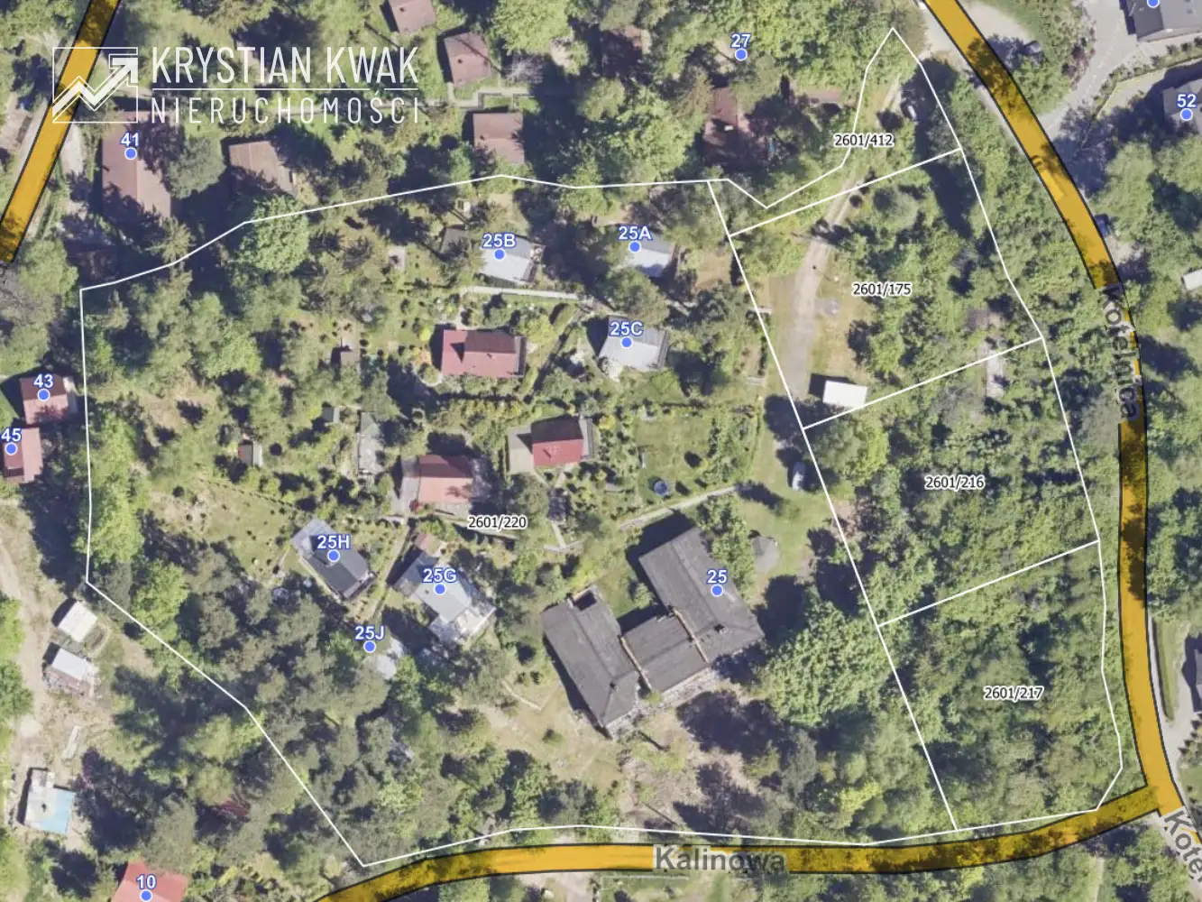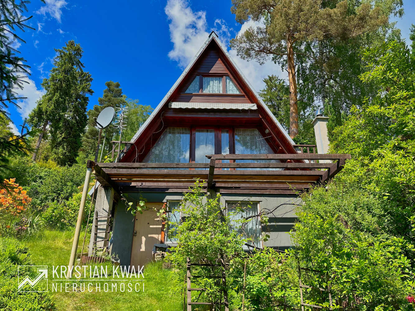 Teren o łącznej powierzchni 1,57 ha zabudowany jest 9 drewnianymi budynkami letniskowymi typu Brda oraz budynkiem wczasowo-kolonijnym (obecnie w stanie do rozbiórki). Teren w całości ogrodzony z urządzonym wjazdem od strony północnej (ul. Kotelnica), dwuskrzydłowa brama i furtka stalowa umożliwiające wygodną komunikację. We wschodniej części nieruchomości urządzony częściowo utwardzony parking dla samochodów osobowych, dodatkowo do użytkowania przez nabywcę przeznaczona jest drewniana wiata samochodowa, pokryta blachą, utwardzenie wykonane z płyt betonowych. Domek otoczony jest starannie zagospodarowaną zielenią: trawnikiem oraz licznymi nasadzeniami drzew i krzewów ozdobnych, które tworzą przyjemne, naturalne otoczenie. W ogrodzie znajdują się także miejsca do wypoczynku na świeżym powietrzu, idealne do relaksu i spędzania wolnego czasu.